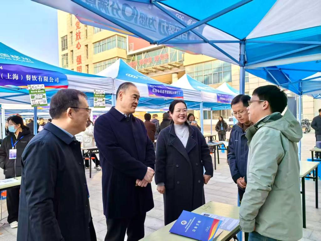 党委书记邢淑婕、校长薛存心、副校长程传蕊、漯河市人社局就业促进办公室主任宋城等亲临现场,与用人单位代表深入交流,详细了解金融、信息技术、新能源、商贸服务等重点行业发展动态与人才需求趋势,认真听取用人单位对学校人才培养模式及就业服务等方面意见建议。校领导还与参会同学亲切交谈,细致询问求职进展与职业规划,鼓励同学们“把握双选会关键期,增强信心、积极行动,主动将个人成长融入国家发展大局”。
