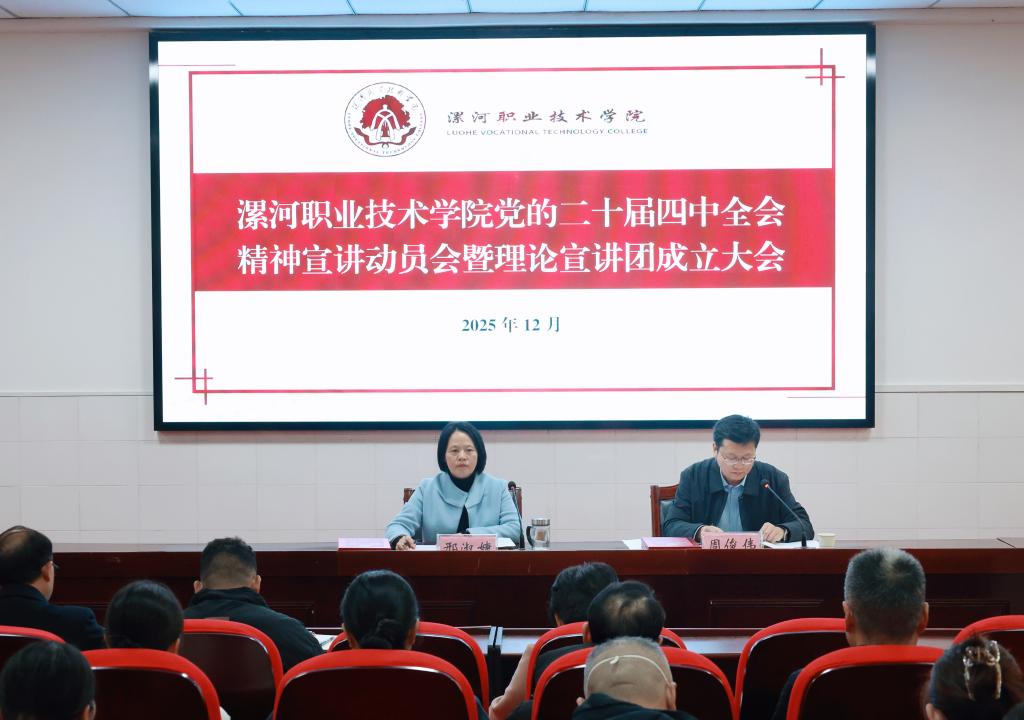 为深入学习贯彻党的二十届四中全会精神,认真落实中央、省委、市委关于做好全会精神宣讲工作的有关要求,12 月11日,我校召开党的二十届四中全会精神宣讲动员会暨理论宣讲团成立大会。校党委书记邢淑婕出席会议并讲话。会议由党委副书记周俊伟主持。各基层党组织书记、副书记,理论宣讲团全体讲师参加会议记,理论宣讲团全体讲师参加会议。